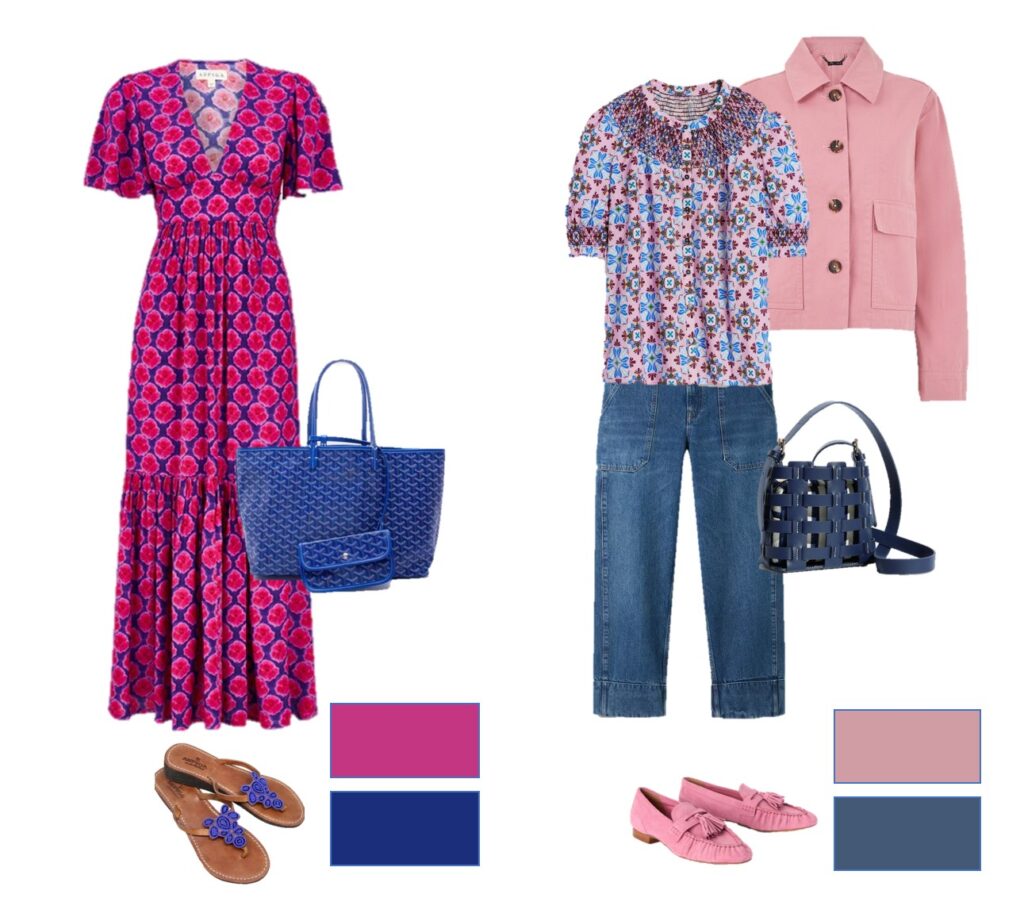 Bold colours are great for you if you have Bright colouring so this combination of fuchsia pink and cobalt blue will look fabulous on you. (Dress and beaded sandals from Aspiga and canvas beach bag from eBay).