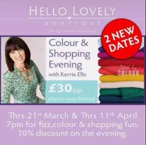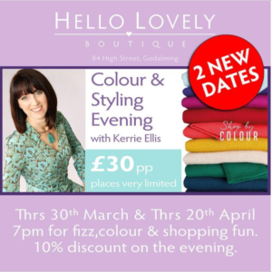 SOLD OUT Colour & Styling Evening – Hello Lovely, Godalming – Thursday 30th March’23 & Thursday 20th April, 7-9pm